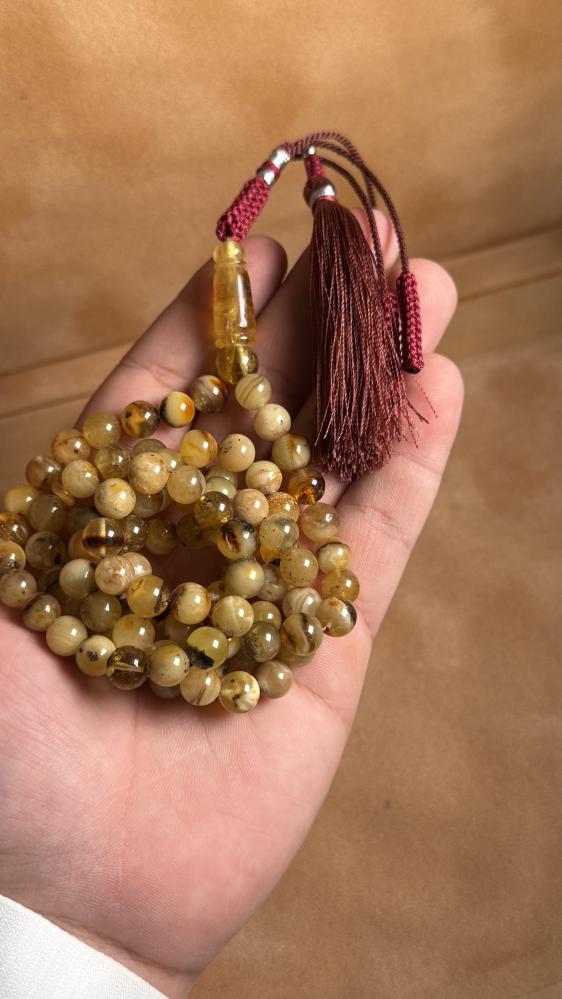 مسباح كهرمان طبيعي::الوزن : 32 قرام ::عدد الخرز : 99 خرزة ::مقاس الخرز : 8 مل::الشكة كركوشة مميزة والتعديل مجاني